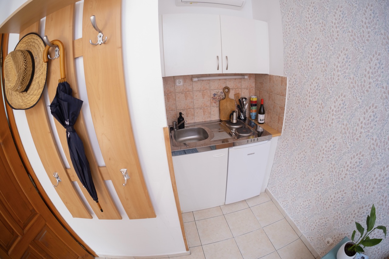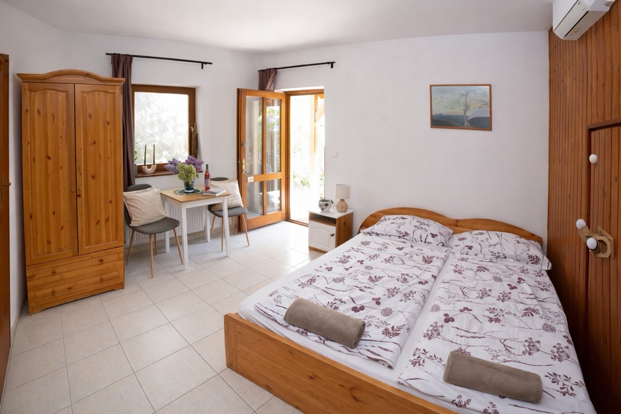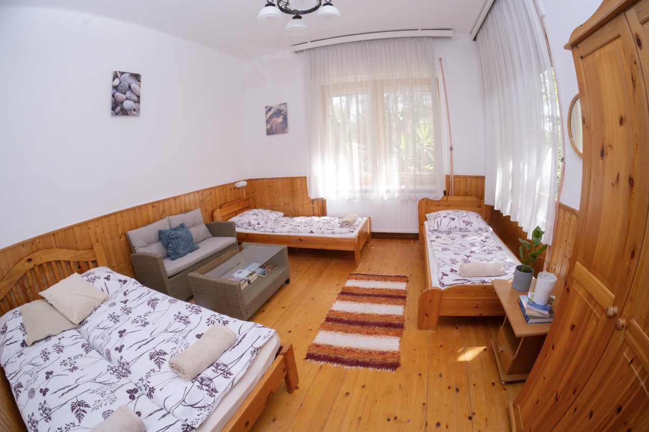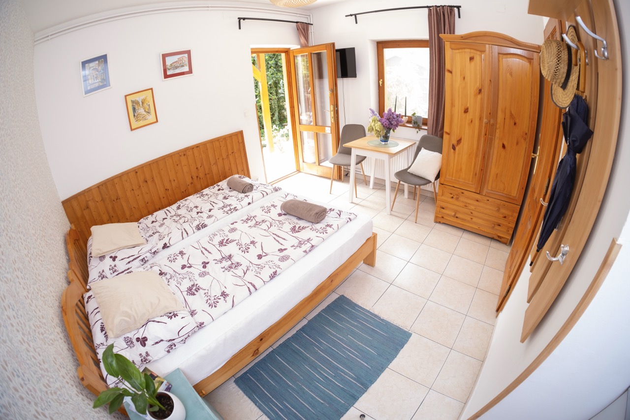 25 m2, franciaágy +2 külön ágy, mini-konyha, zuhanyzó, wc, klíma, saját balkon