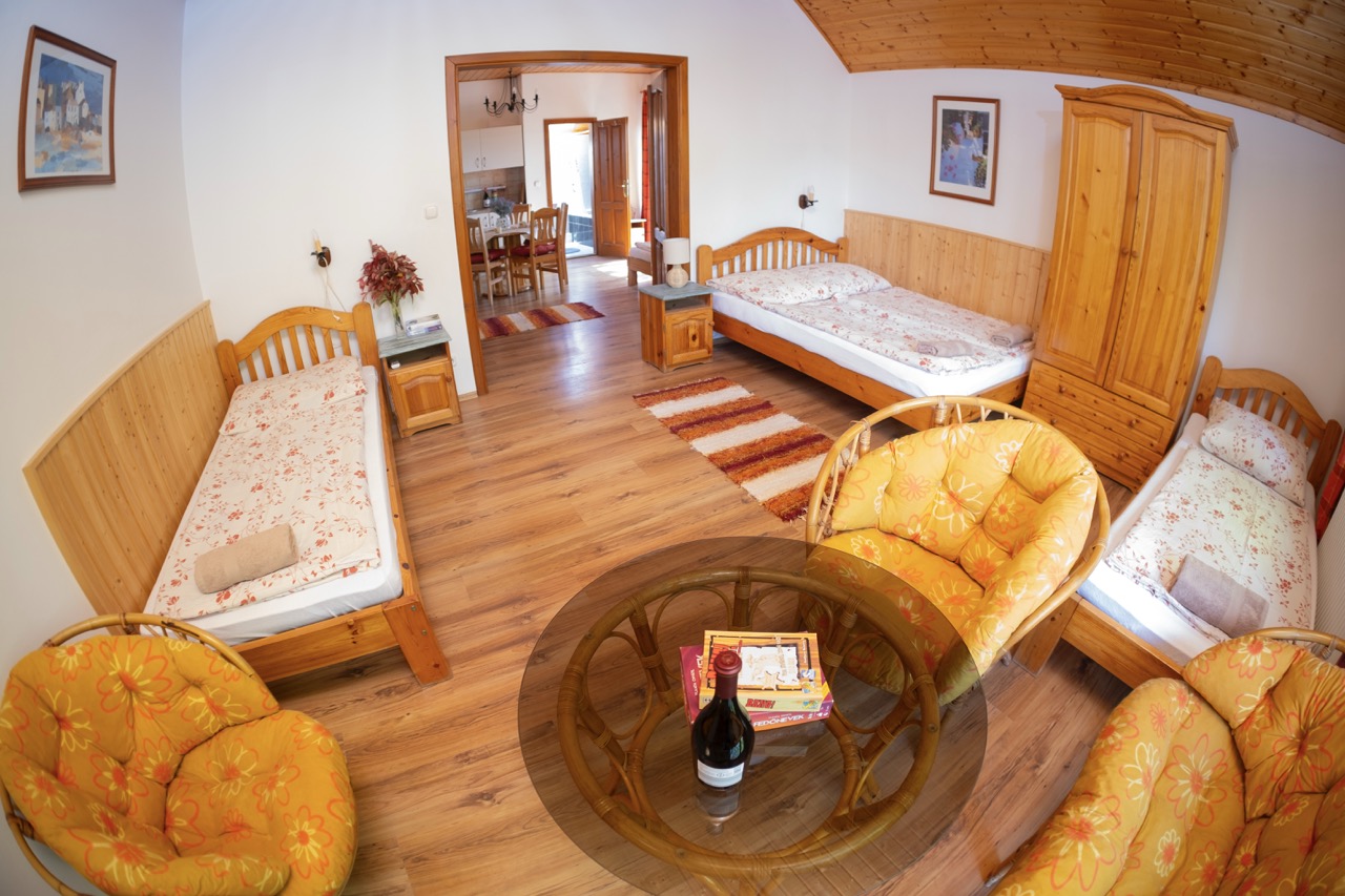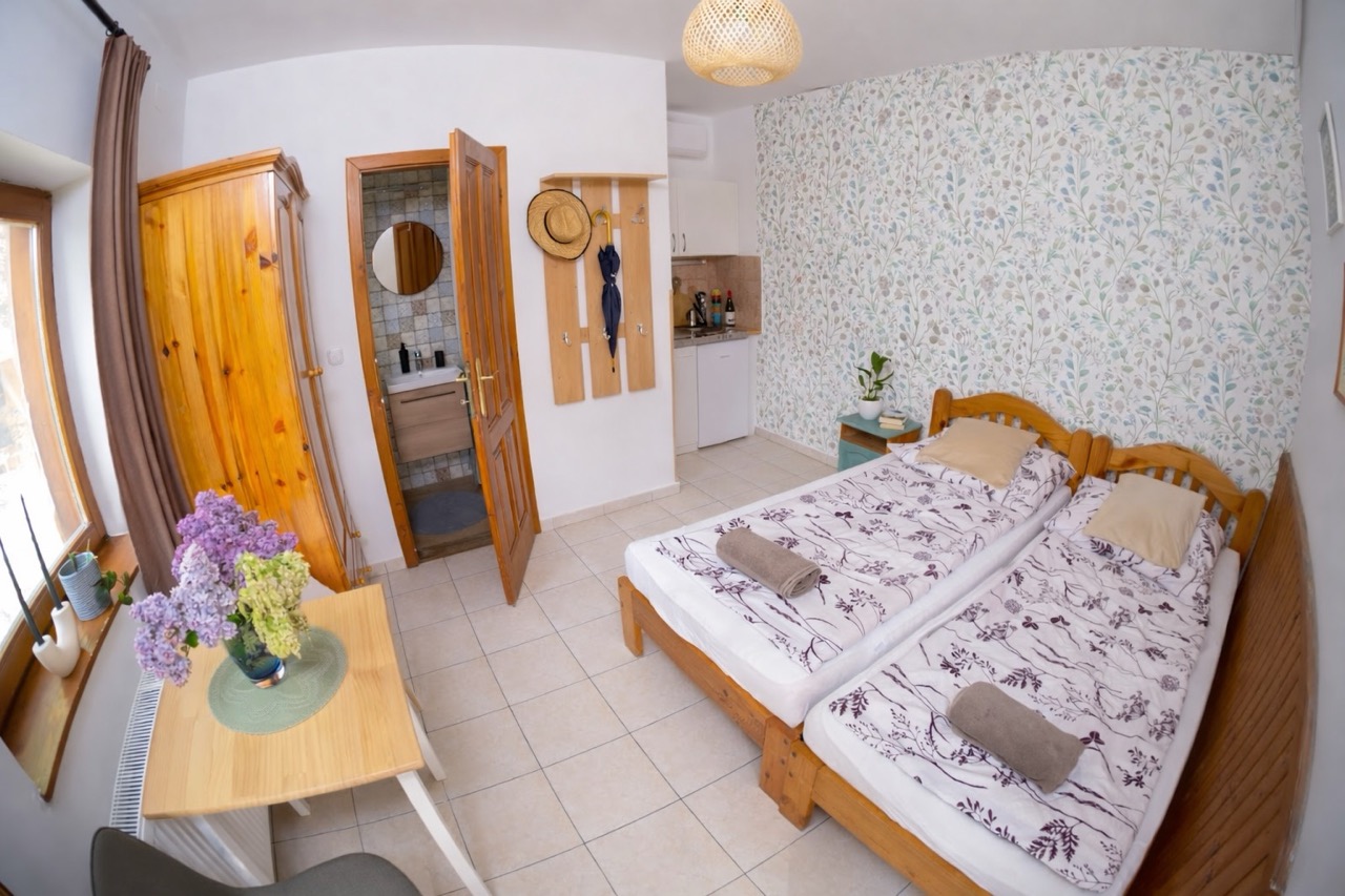 2+2 főnek, szobánként franciaágy, mini-konyha, zuhanyzó, wc, klíma, közös balkon)
