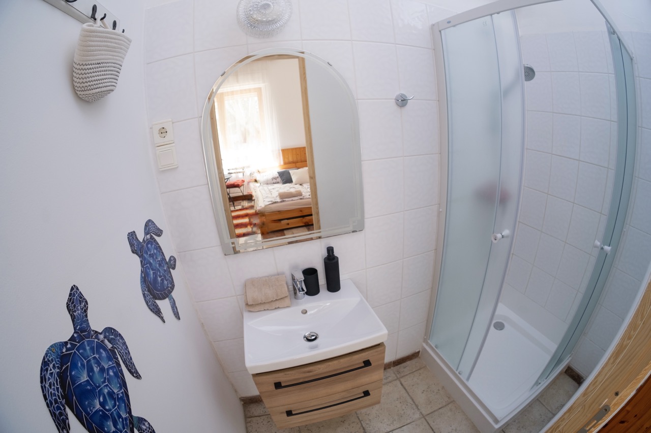 franciaágy, zuhanyzó, wc, hűtőszekrény, saját galéria kanapéval, klíma
